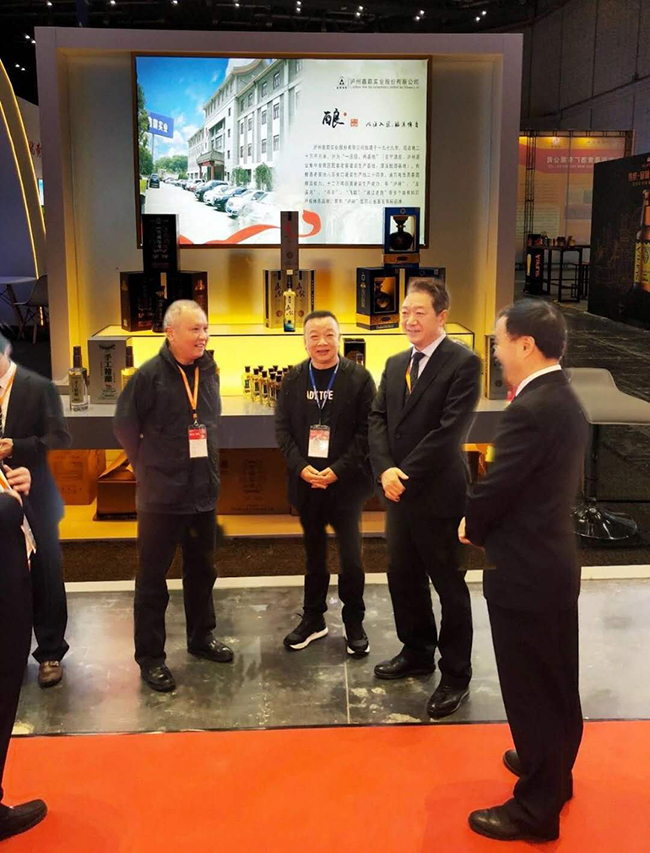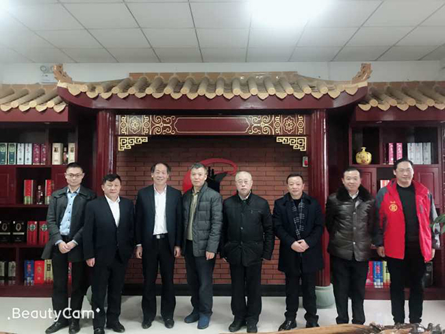 白酒專家胡永松教授(右二),瀘州市酒業(yè)促進局局長任小波(左二)在公司董事長魏云飛(右一)陪同下指導公司工作。