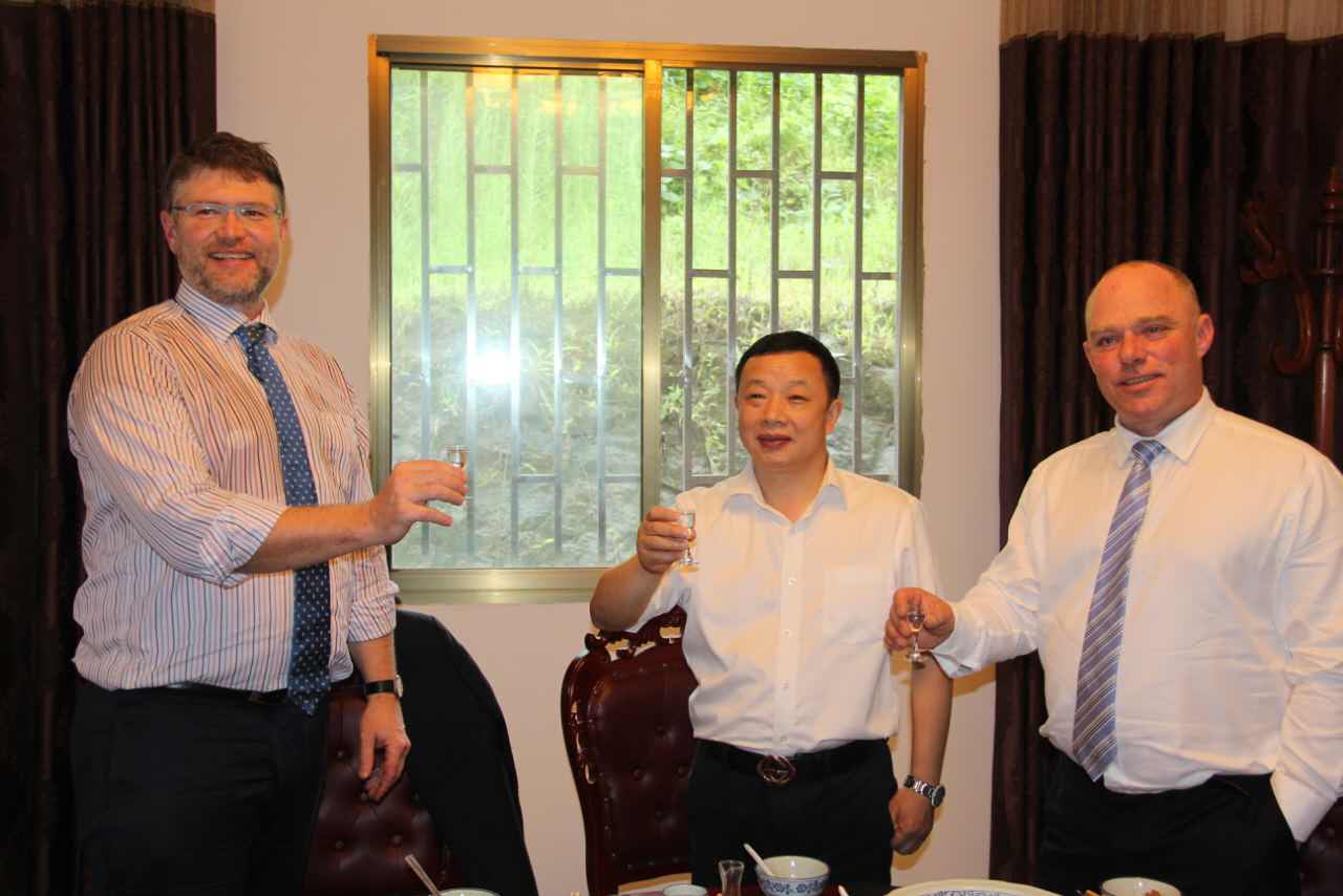 勁牌酒業(yè)股份有限公司董事長吳少勛(左三)等與公司董事長魏云飛(右三)在瀘州鑫霸實業(yè)公司合影